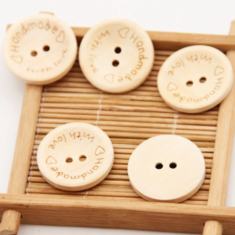 HooFulli 20MM 50PCS/lot Natural Color Wooden Buttons handmade love Letter wood button craft DIY baby apparel accessories