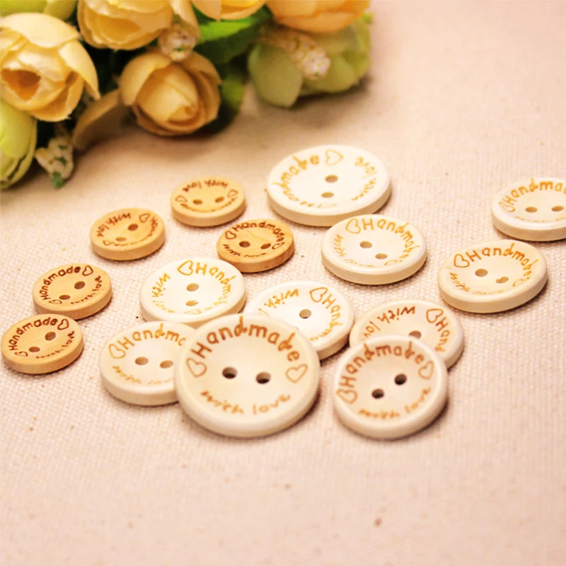.image for HooFulli 25 20 15MM 50PCS/lot Natural Color Wooden Buttons handmade love Letter wood button craft D