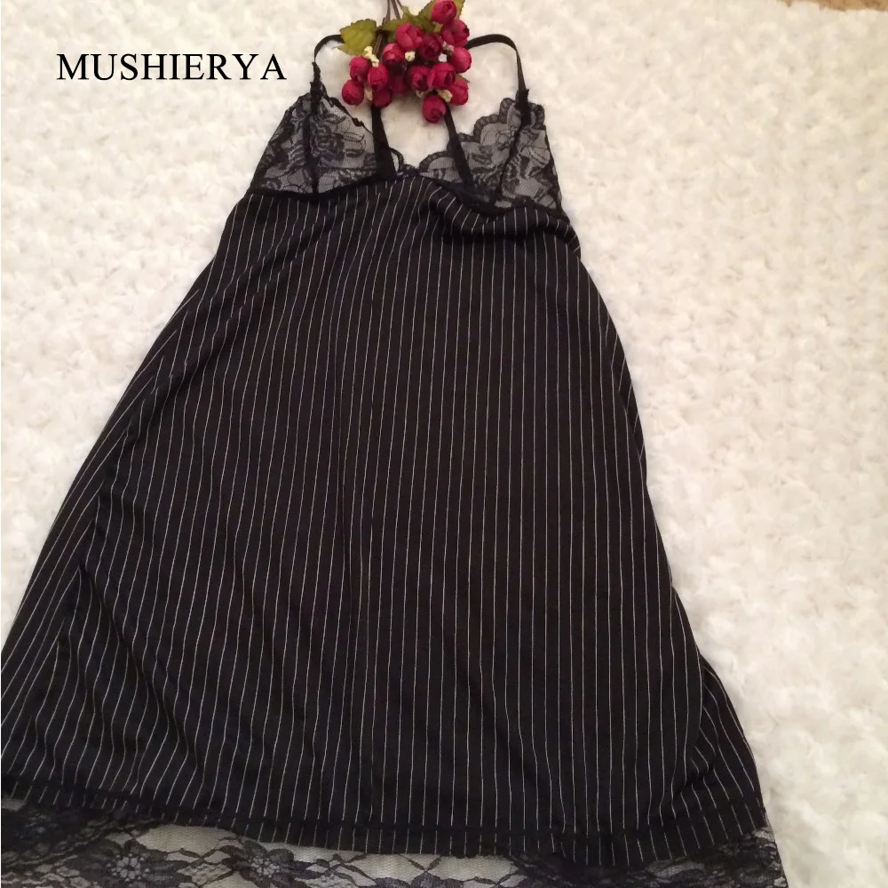Related Product for Women Baby Doll Sexy Hot Erotic Lingerie Lace Sleepwear Striped Deep V Sexy Nightwear Female Bodyco